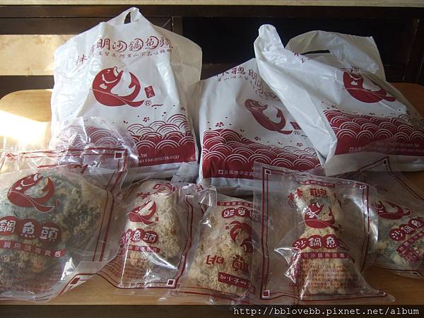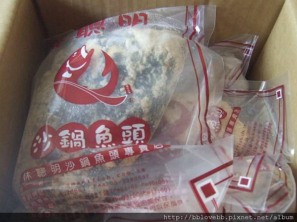 有三包菜、一個特大魚頭和四個魚肉塊